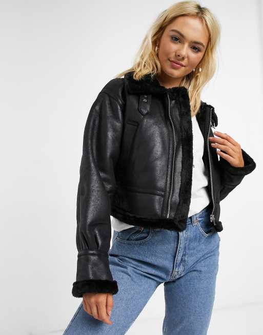 Product Name: Black cropped borg jacket outlet