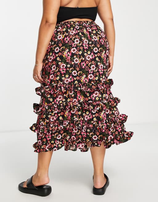 Product Name: Black floral ruffle skirt outlet