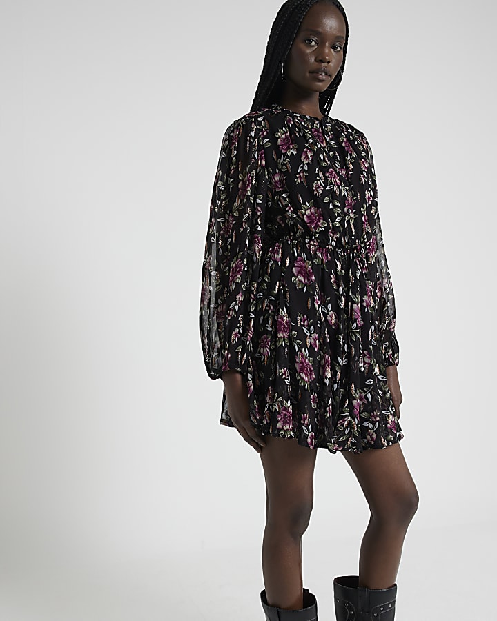 Product Name: Black floral smock dress outlet