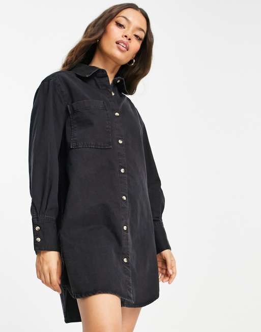 Product Name: Black oversized denim shirt dress outlet