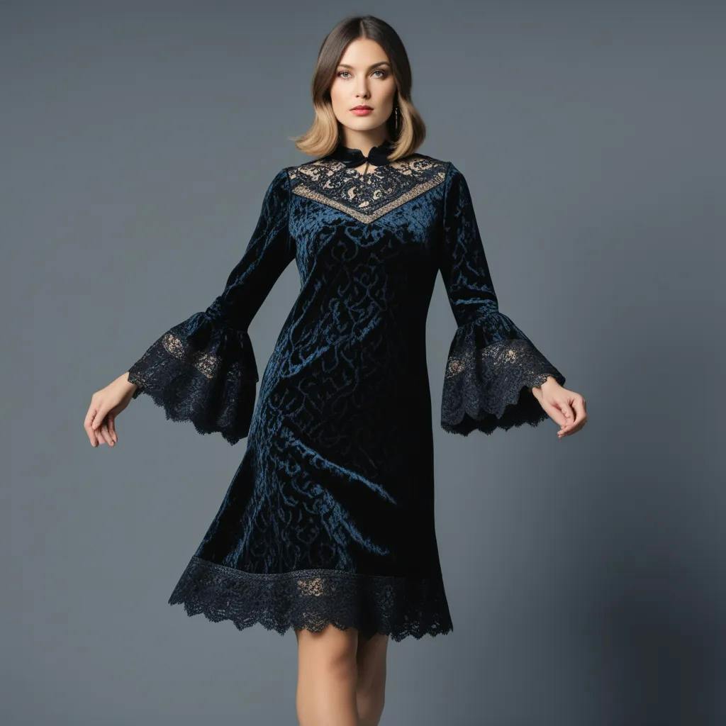 Product Name: Black velvet dress with bell sleeves outlet