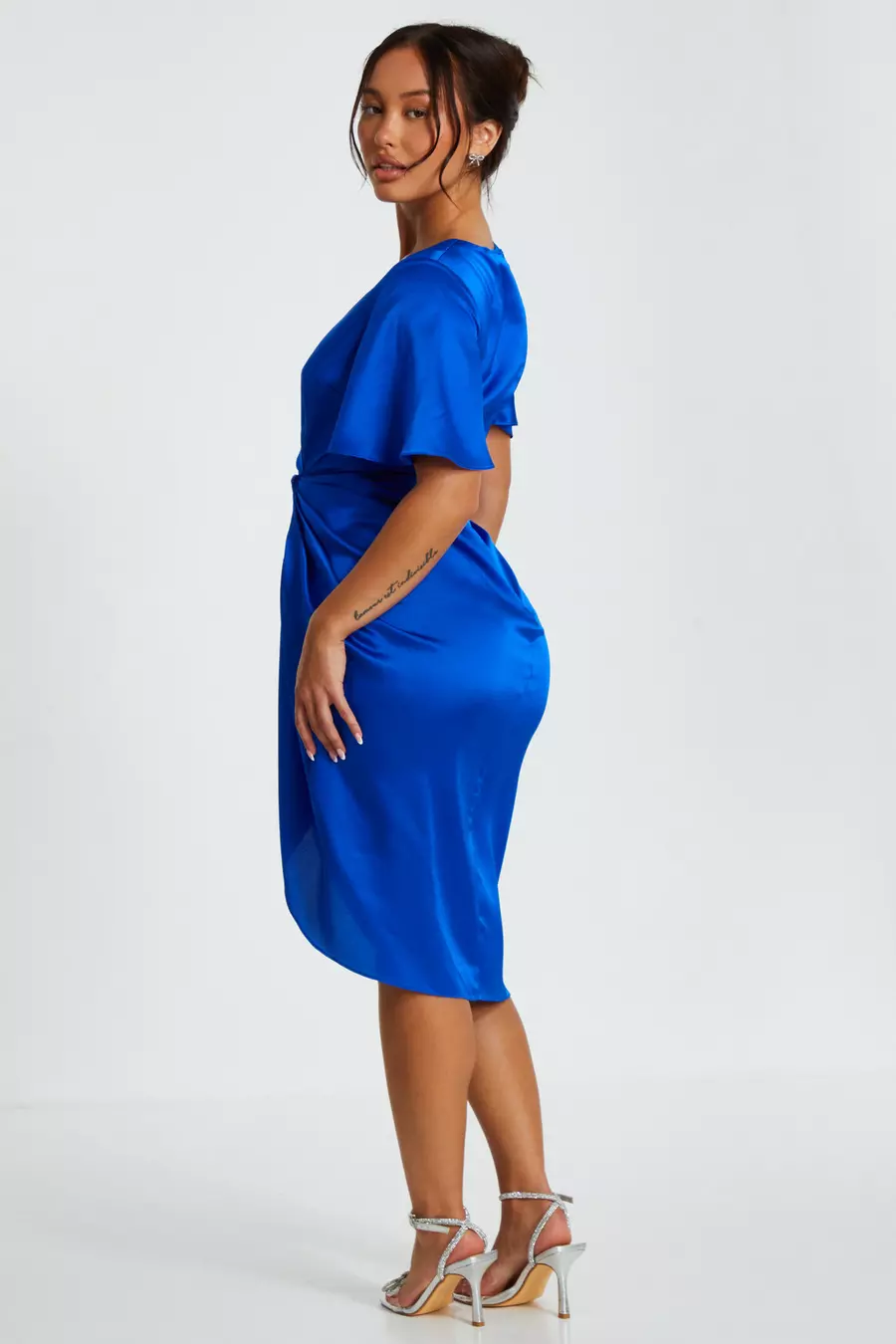 Product Name: Blue satin ruched dress outlet