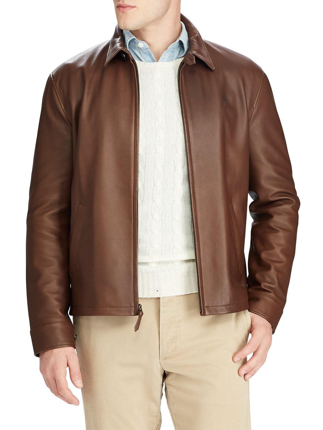 Product Name: Brown leather jacket ralph lauren outlet