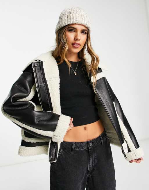 Product Name: Cropped pu aviator jacket outlet