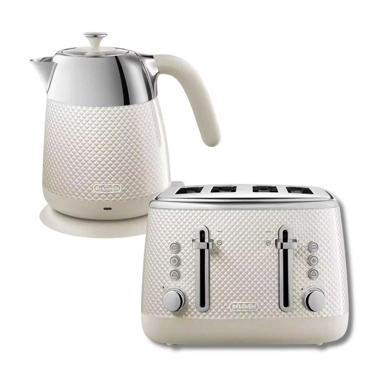 Product Name: Delonghi white kettle and toaster set outlet