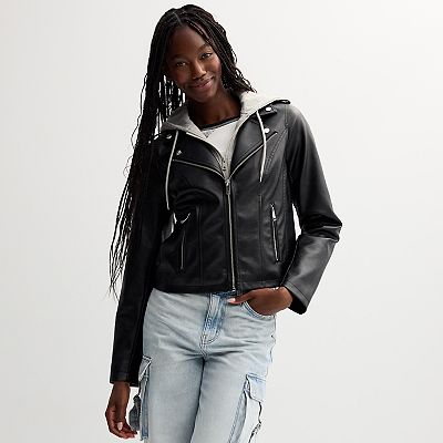 Product Name: Faux leather hooded jacket women's outlet