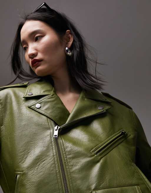 Product Name: Green faux leather jacket outlet
