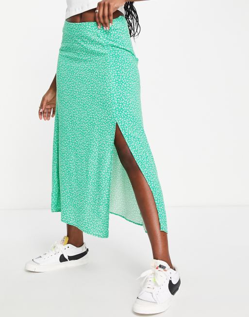Product Name: New look ditsy floral midi skirt in green pattern outlet
