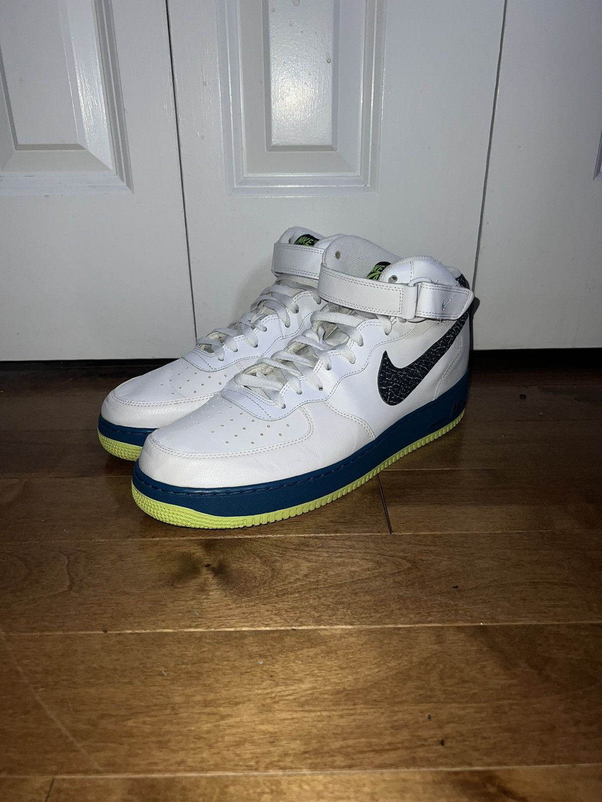 Product Name: Air force 1 mid white/black-green abyss-volt outlet