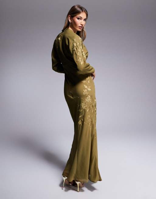 Product Name: Olive green embroidered dress outlet