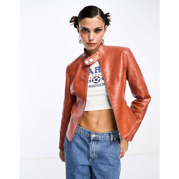Product Name: Orange faux leather jacket outlet