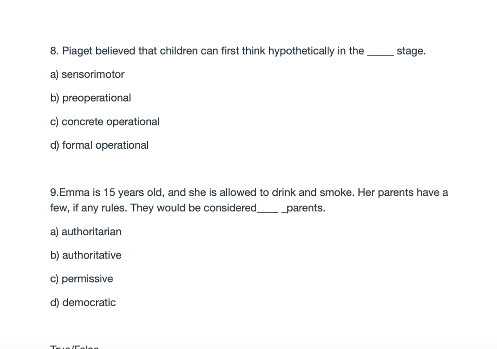Product Name: Piaget believed that children first become capable of hypothetical thinking during the outlet