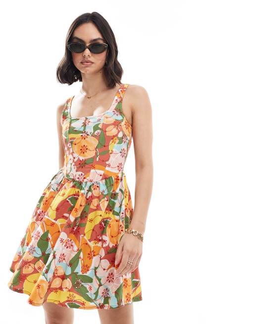 Product Name: Asos design broderie square neck mini skater dress with lace trims outlet
