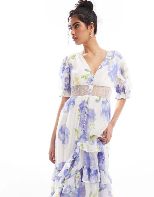 Product Name: Asos design lace insert ruffle back midi prom dress outlet